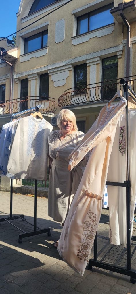 Працівниці хабу також допомогли їй долучитися до грантової підтримки. Завдяки цьому Світлана змогла придбати вишивальну машинку, промисловий стілець, відпарювач для одягу, нитки, тканину та додаткові п’яльця. Це дало можливість розпочати створення якісного українського етно-одягу для людей різної комплекції, поєднуючи традицію та сучасний підхід.